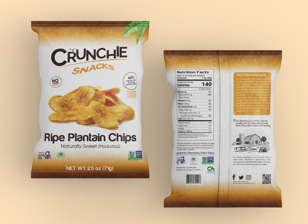 Crunchie Snacks proudly bears the Non-GMO Verified Project label, signifying that our plantain chips are made from non-genetically modified organisms. We are committed to providing wholesome, natural snacks to our customers